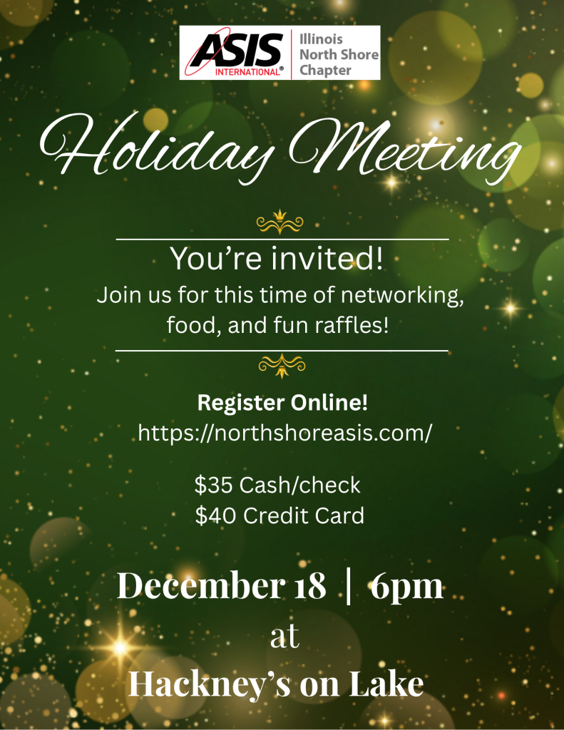 Join us for our annual holiday meeting with great raffles, networking and fun!